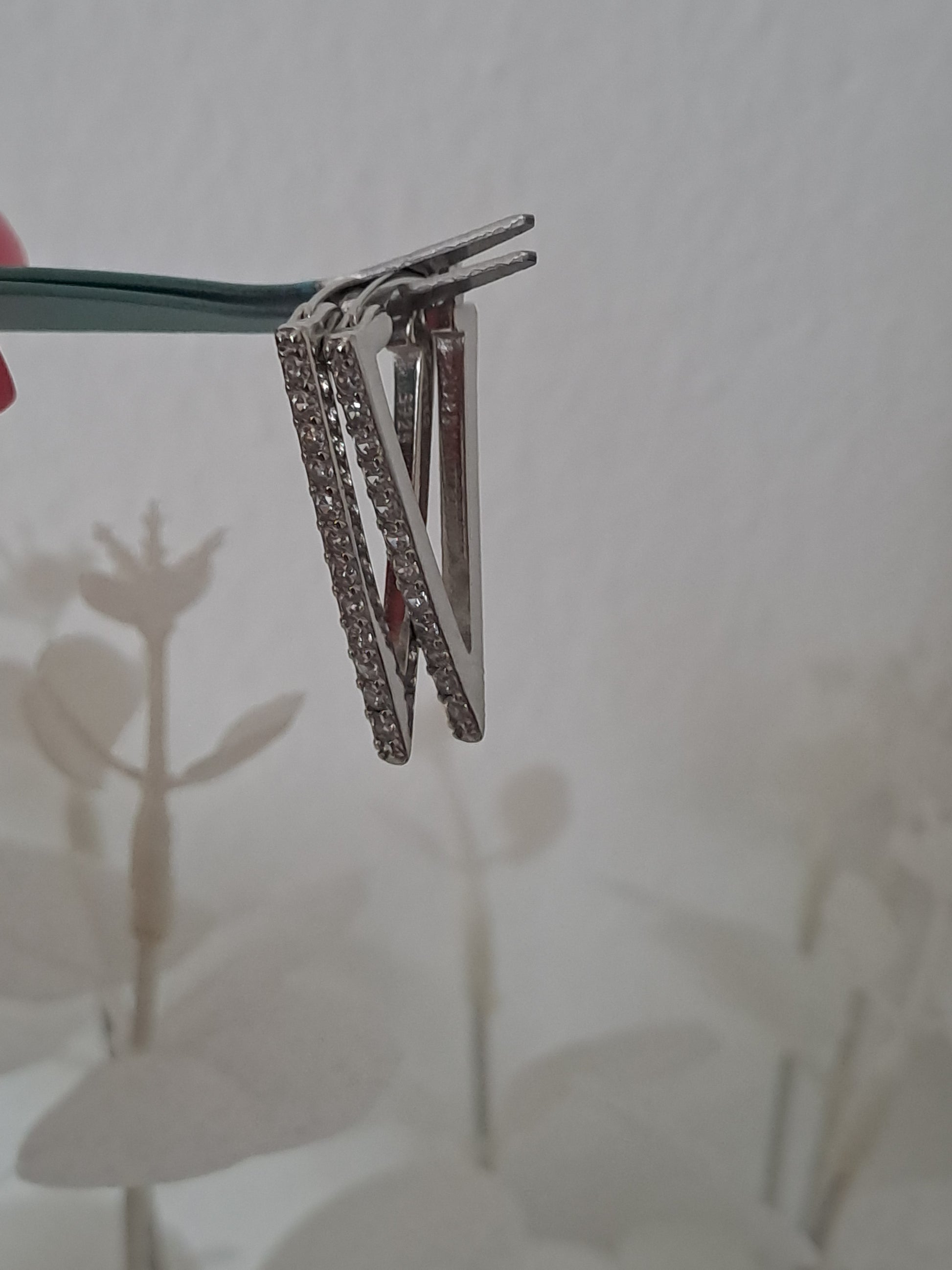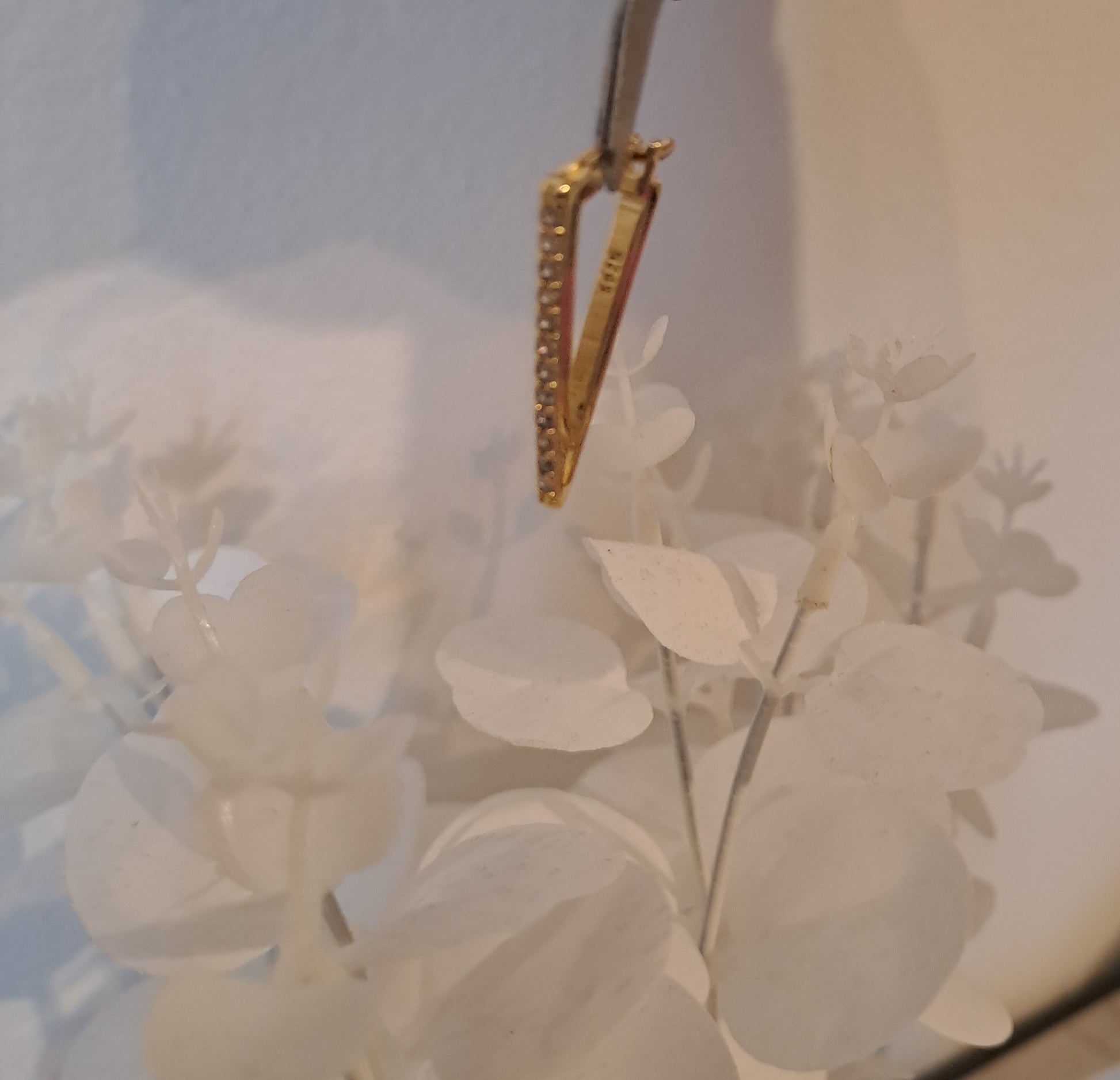 Orecchini in argento sterling 925 e cubic zirconia, anallergici. Disponibili nei colori argento e placcato oro 18k. Lunghezza cm 2,5